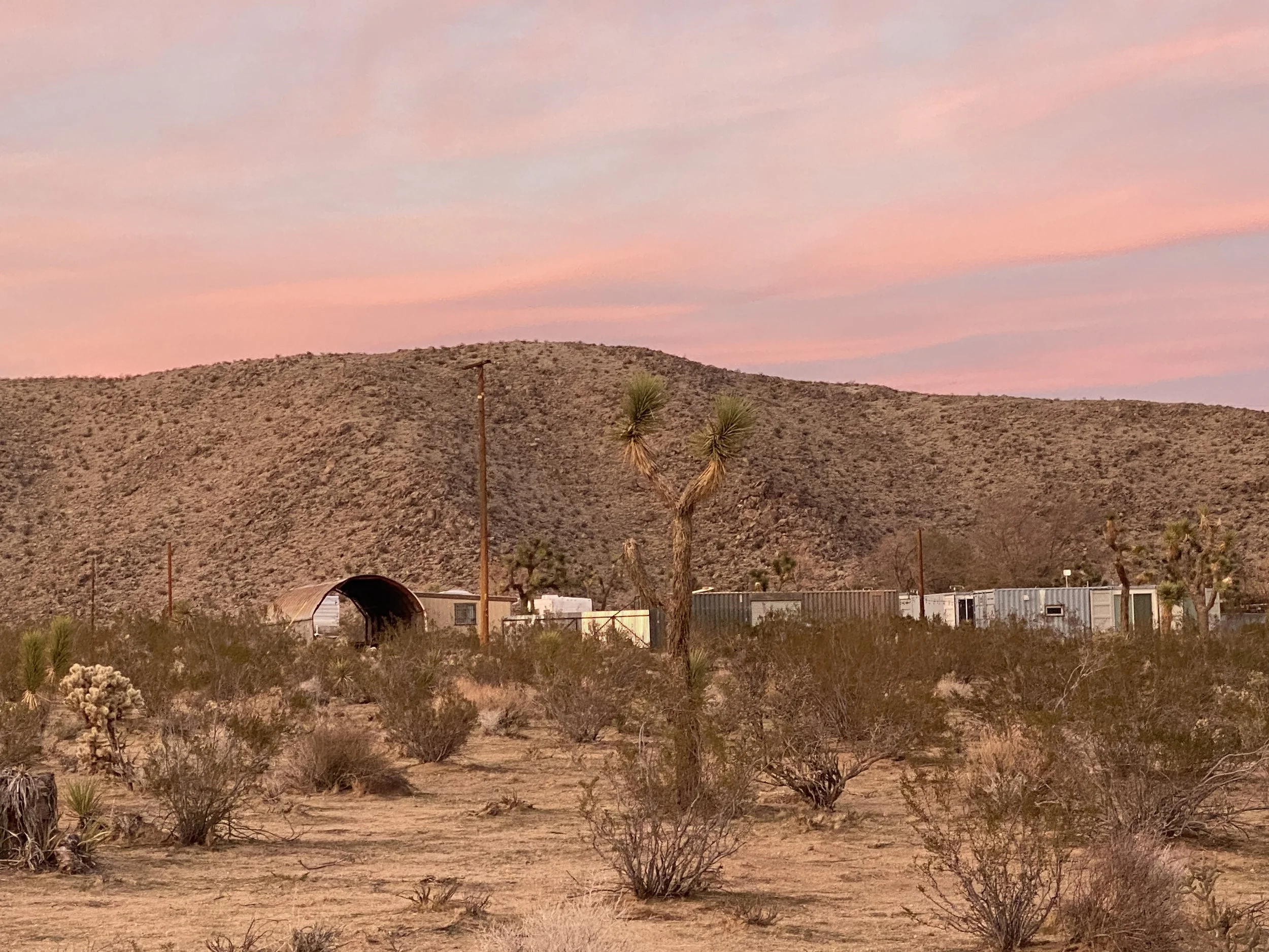 The Shipping Yards is a private retreat center on 5 acres, with commanding views of Joshua Tree Park to the south, the Partlett Mountains to the north, and San Gorgonio Mountain to the west, the highest peak in Southern California at 11,500 ft.